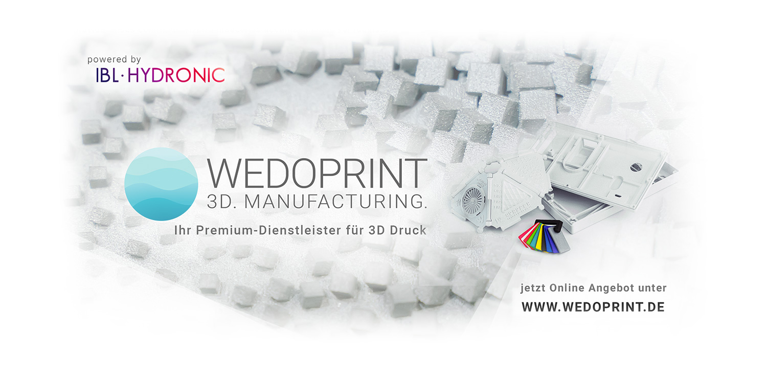 Ab sofort stellt IBL-HYDRONIC unter dem Webportal WEDOPRINT.de eine Plattform zur Kalkulation und Bestellung von 3D-Druckteilen zur Verfügung. Die Plattform kann von gewerblichen und privaten Kunden genutzt werden. Die komfortable und bedienerfreundlich gestaltete Oberfläche ermöglicht eine schnelle Kalkulation und Abwicklung von 3D-Druckaufträgen.
